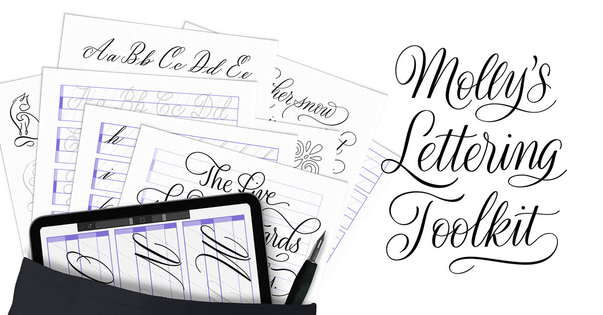 There are literally dozens of free printable and Procreate downloads in my own Lettering Toolkit! Learn flourished lettering styles, flourished calligraphy layouts, animal flourishes, and more!