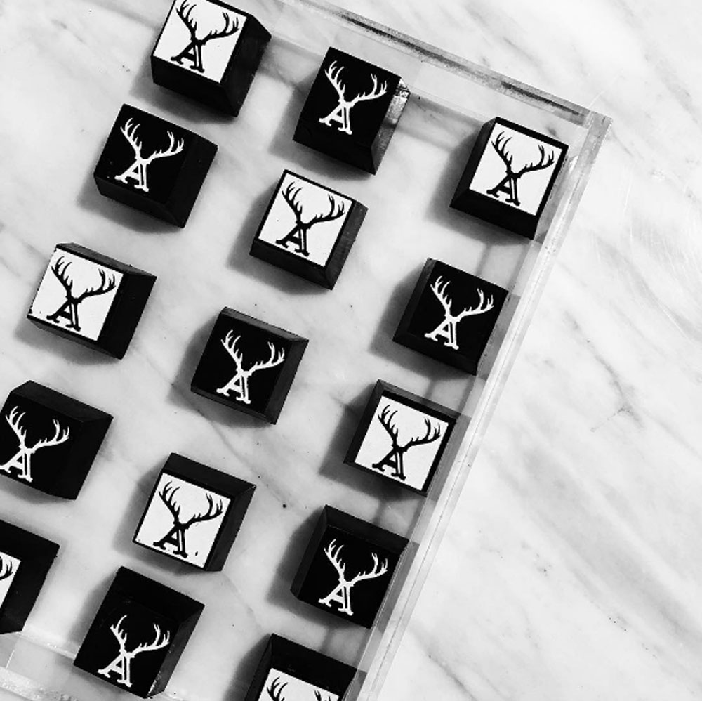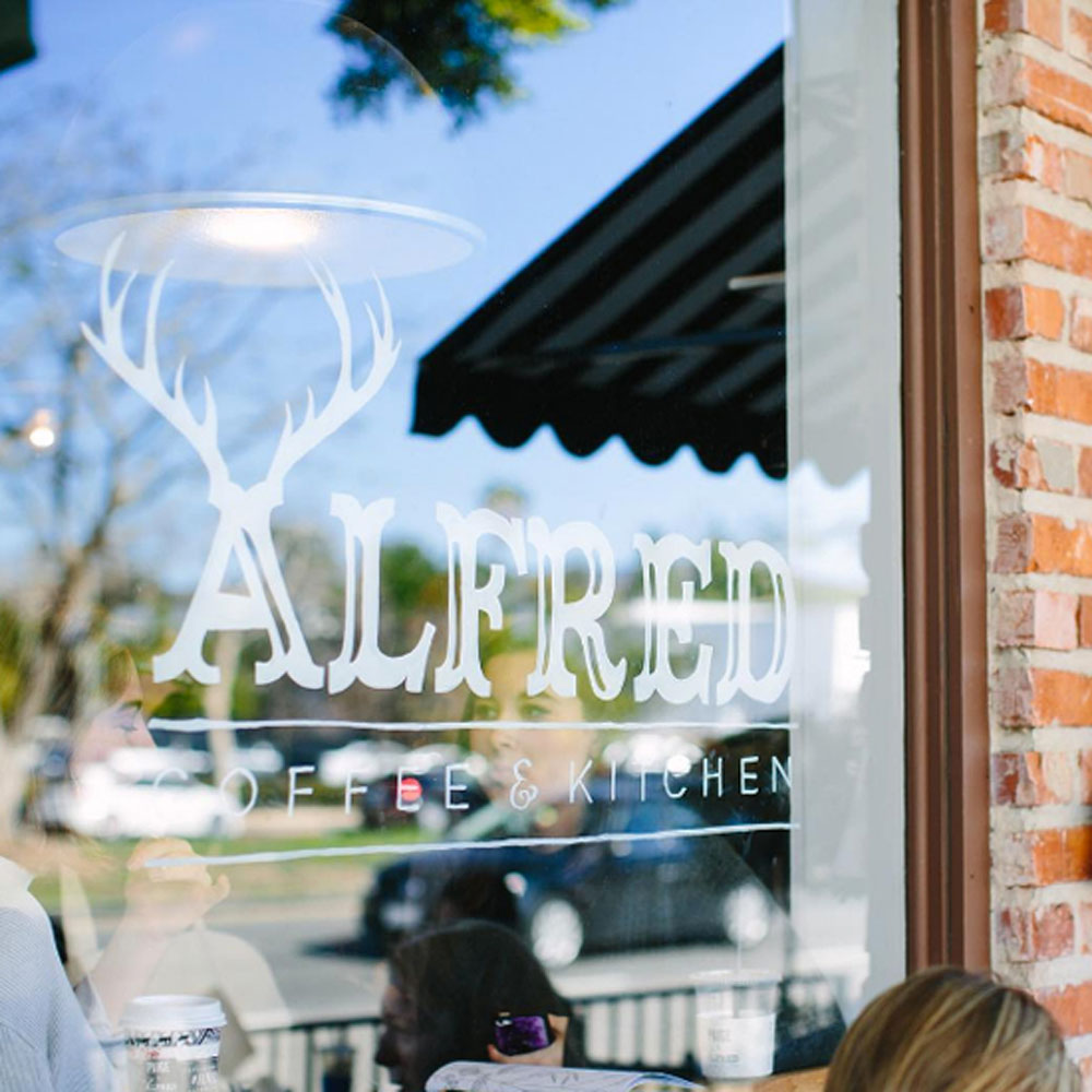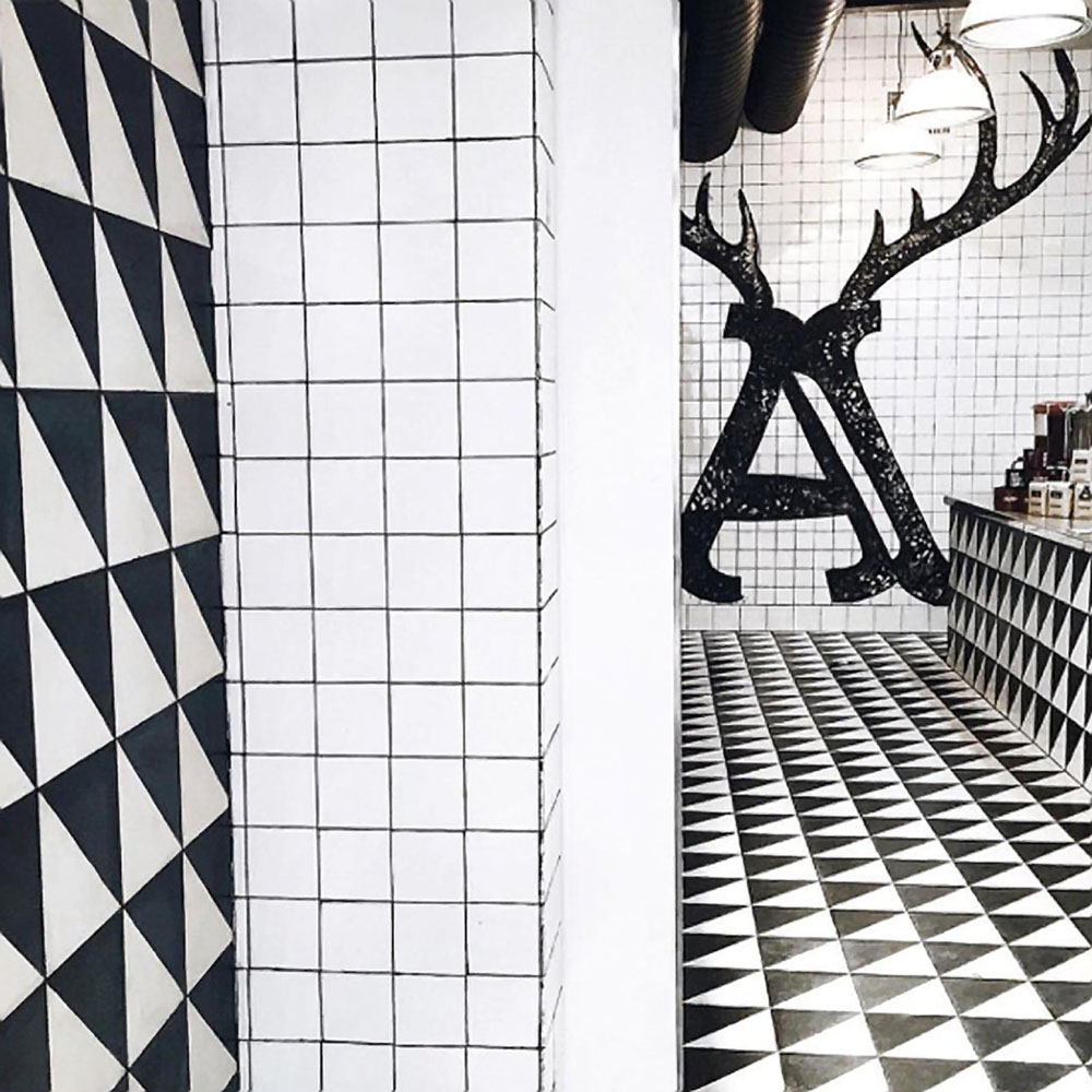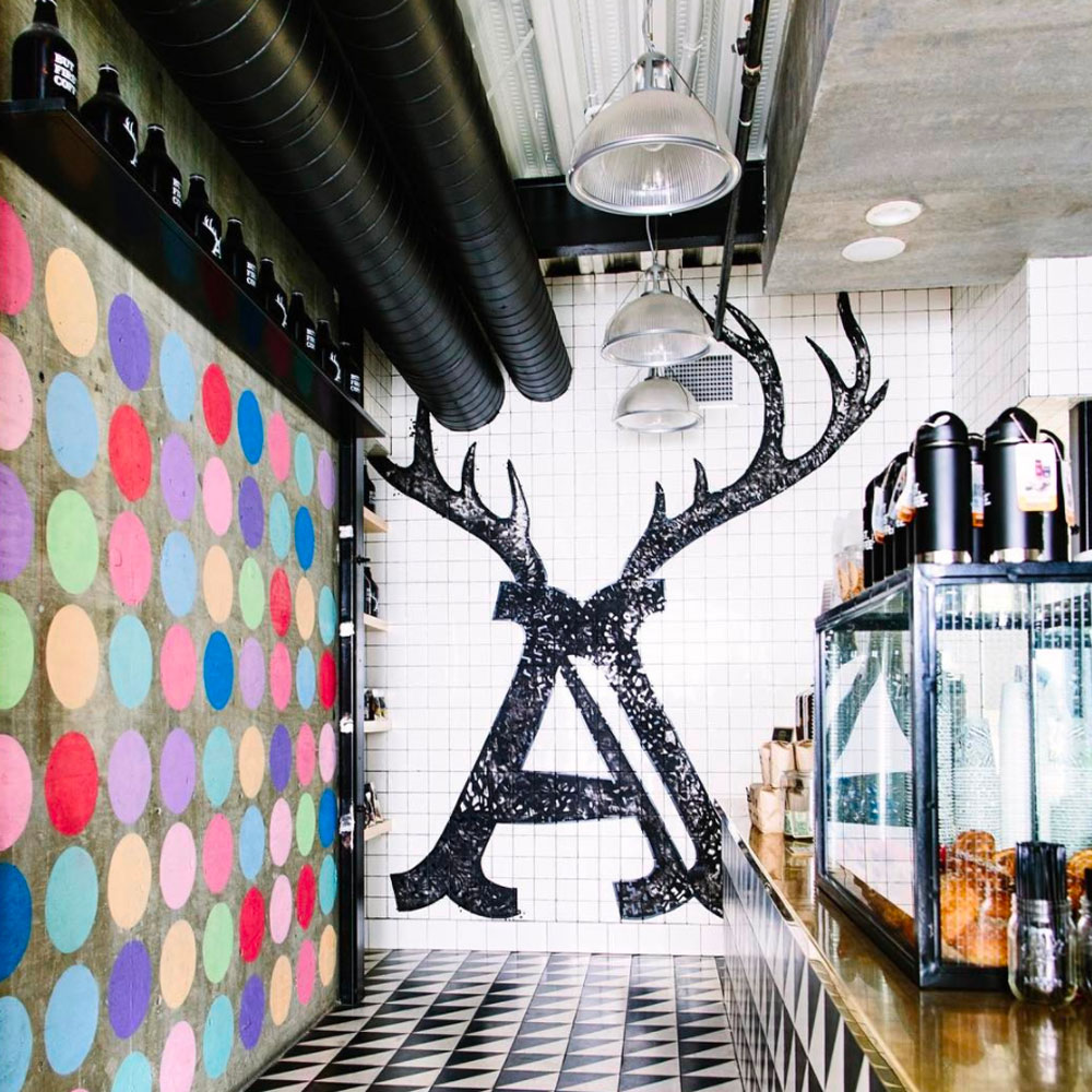 Awhile back (as in, early 2013), I designed the antlered "A" for the Alfred {Coffee + Kitchen} logo. (I can't take credit for their entire branding, but I did make their antler-clad icon!) It's been so cool to see all the ways they've used it — on cups, signage, packaging and swag. But for me, nothing beats the amazing application of it on the tile wall of their Studio City location! #butfirstcoffee