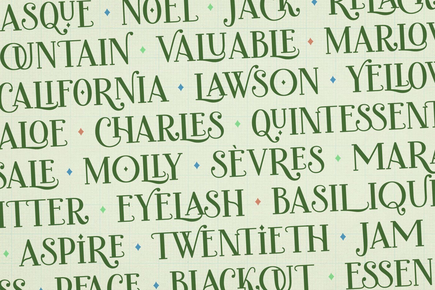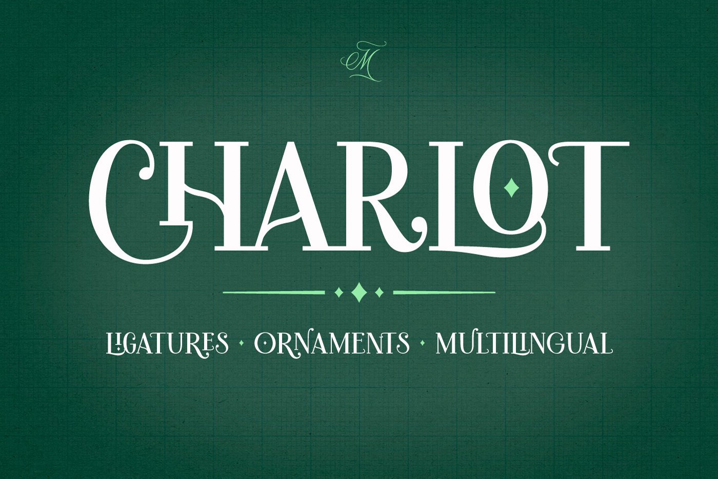 Introducing Charlot, a decorative display font with dozens of beautiful ligatures and ornaments. The vast selection of ligatures and stylistic alternates makes this font extremely customizable.