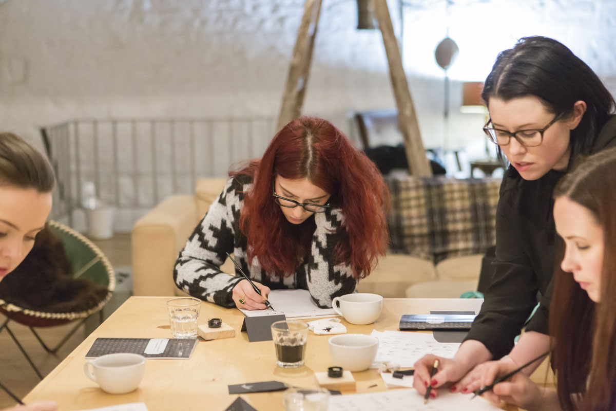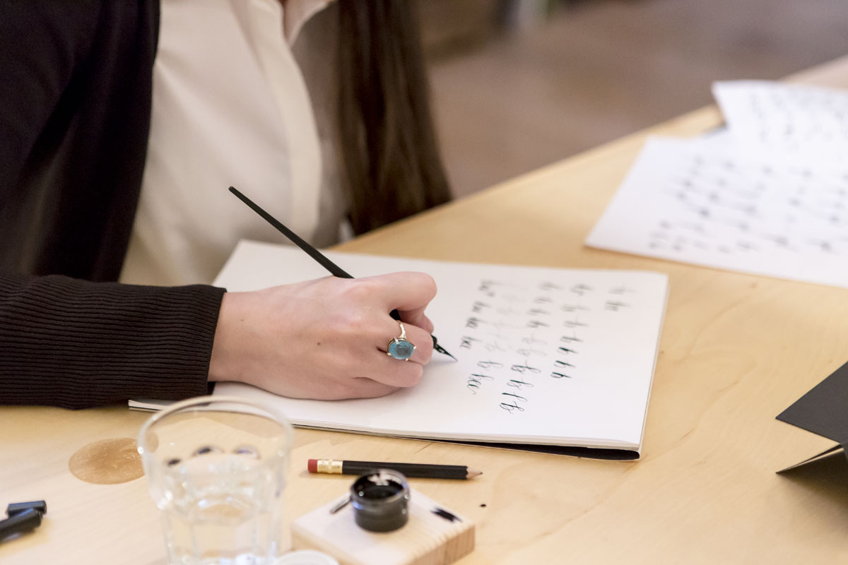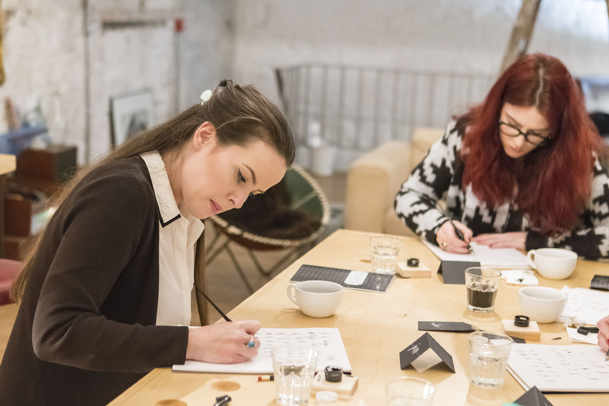 My client had set up the class at Fumbally Stables, a beautiful, cozy space, perfect for spending a late winter afternoon. We put Simon & Garfunkel on the record player, made a pot of tea, and inked letters for a good four hours. It was calligraphy heaven!