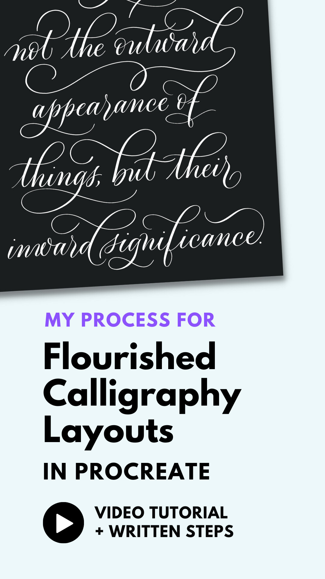 I always sketch my calligraphy in pencil before going over it in calligraphy – especially when I’m making a multi-line layout. This allows me to work out the height of the letters, number of words per line, and total number of lines. As I write each line, I use a new Procreate layer so that I can easily center the lines on my canvas as I go.