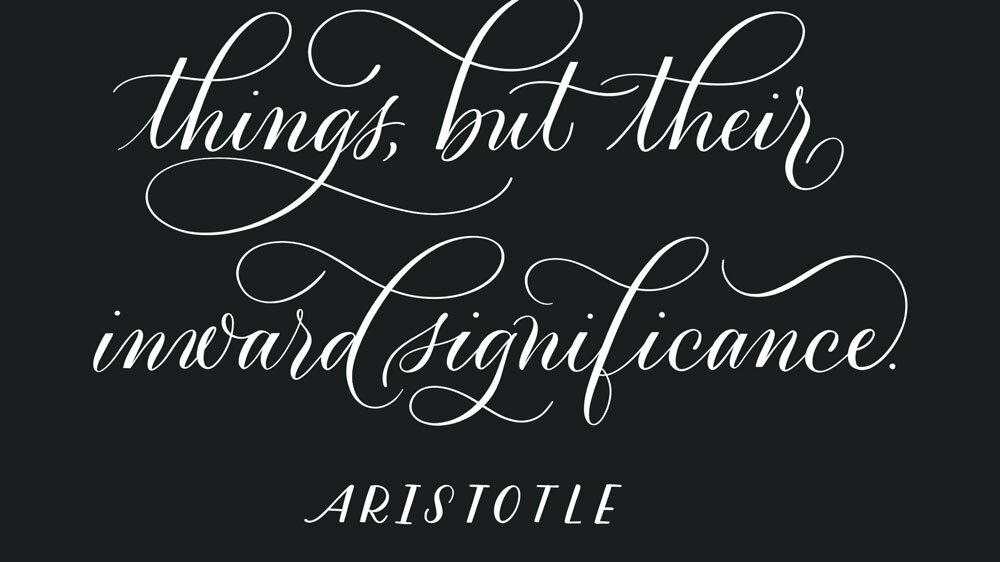 If there is one thing I hope you take away from this video, it is to see how slowly I write, and how much refining I do. I have addressed this in some previous videos, but one of the most common struggles I see with calligraphers, both analog and digital, is that they are inclined to write much too fast, and can get frustrated when a letter doesn’t look right after the first, second, or even third attempt. Take solace in the fact that we professional calligraphers, with years of practice and experience, work extremely slowly, often erasing our work many times before we are satisfied. Calligraphy should be a meditative process, not simply to watch, but also to do.