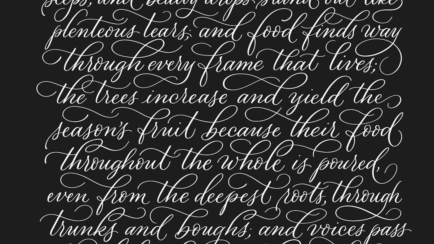 Happy Friday! This week’s video is about creating long calligraphy compositions, specifically, how to lay them out and flourish inside the negative space. You can watch my entire process here, from sketch to pointed calligraphy pen. While I haven’t cut out any steps, I did speed it up, because the real layout took me over an hour!
