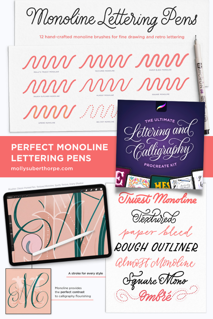 I am using a 5x7-inch canvas at 300 DPI. The pencil and monoline brushes I use are part of my Ultimate Lettering & Calligraphy Procreate Kit.