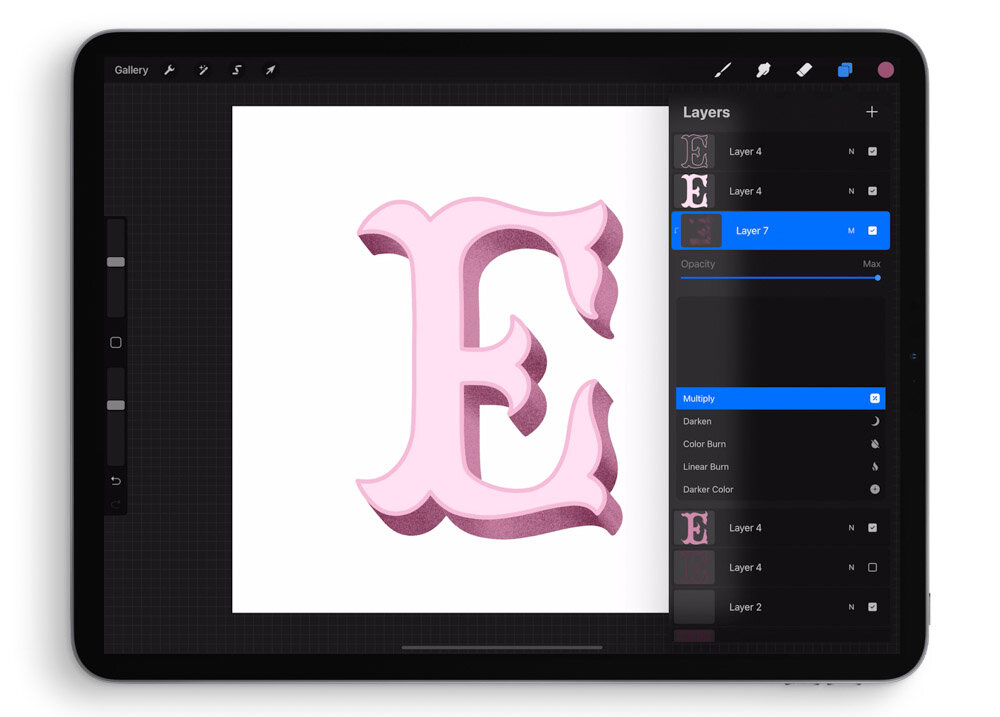 How to Draw a 3D Letter with Drop Shadow in Procreate