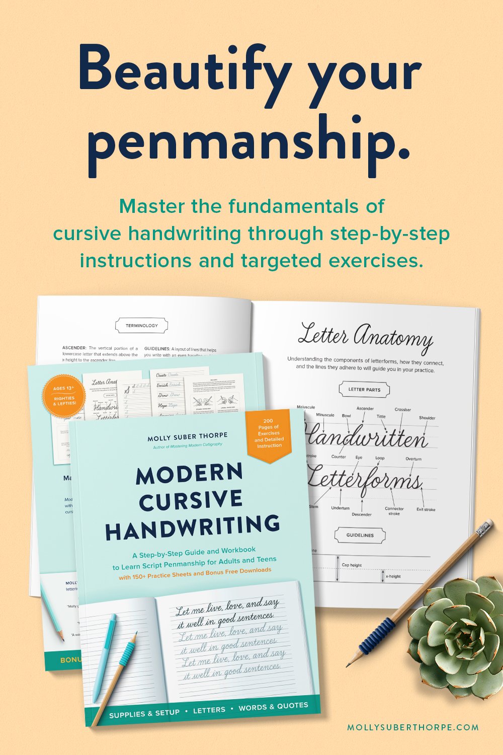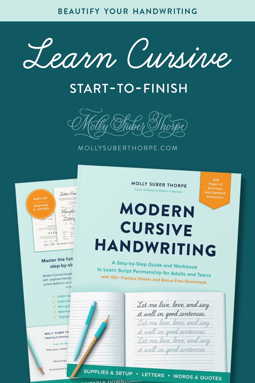 I’m so excited to announce the release of my newest book! Modern Cursive Handwriting is a step-by-step workbook for learning script penmanship in a modern style.