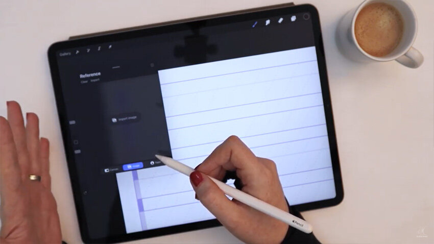 Today I'm going to show you one of the coolest little tricks that came with the new update to Procreate – Procreate 5X. This is a method for using their new reference window feature to practice calligraphy on the iPad. This is a great technique for bringing in letter exemplars that you can look at as you practice freehand, similar to how you might have a book of exemplars laid out on your desk.