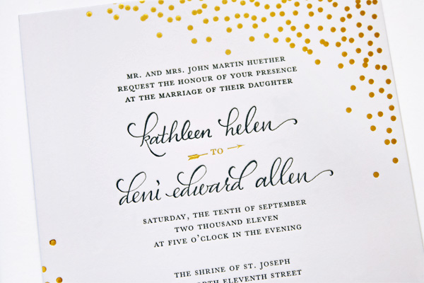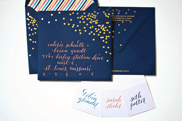 This was surely one of the most beautiful projects I've ever worked on. You may remember the coral and navy save the date envelopes I posted back in March. Well that was only the start. This invitation suite was in the works for a full nine months! I can't take credit for the design of the stationery suite, though — that all goes to the bride herself, Kate Allen. I provided Kate with the digitized calligraphy files and she utilized them in such creative and beautiful ways.