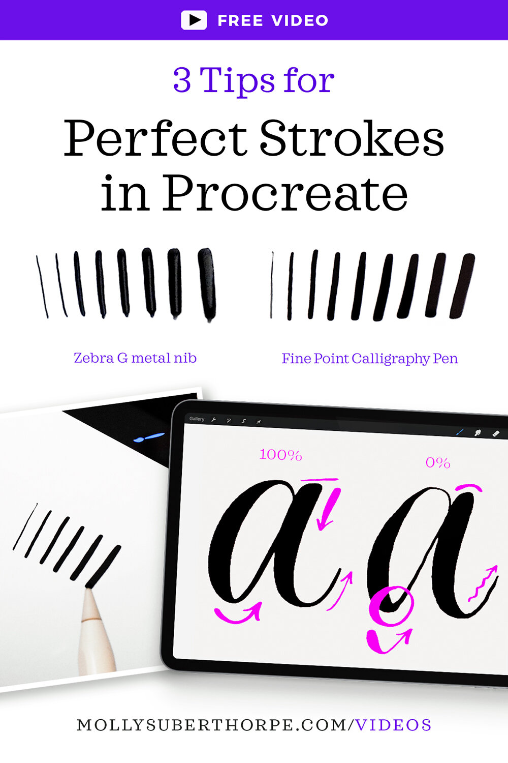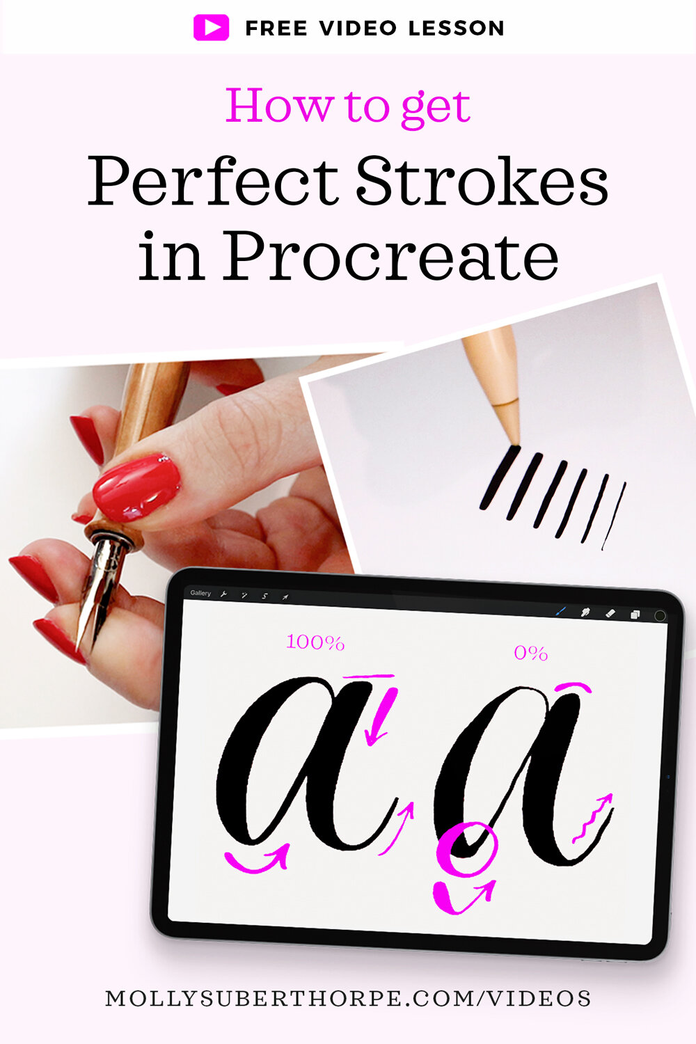 Learn my top tips on how to draw perfect calligraphy strokes in Procreate, with beautiful thin and thick weight that looks just like ink-on-paper writing.