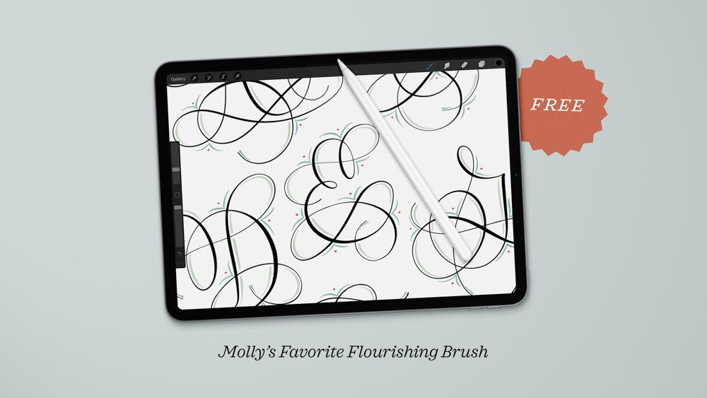 If you don’t currently have any premium calligraphy brushes, snag the one I give away for free as part of Molly’s Lettering Toolkit. This will certainly get you started, and for all you know, might end up being your favorite!