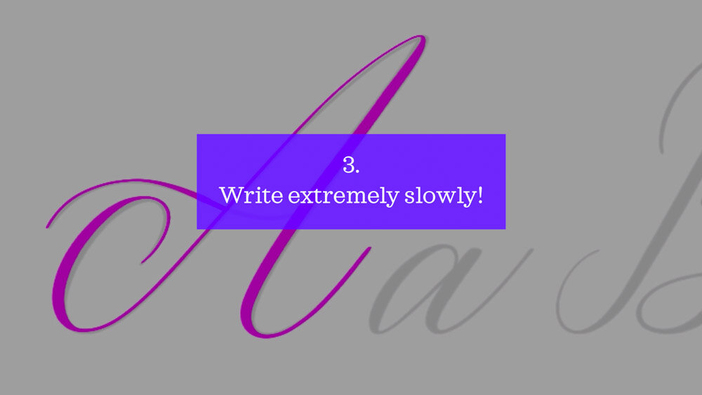 I see a lot of beginner calligraphers in both analog and digital realms try to write calligraphy much too quickly, and then inevitably feel frustrated that their letterforms looks sloppy, their pressure and stroke weight is uneven, and in general they don't achieve the uniformity they are striving for.