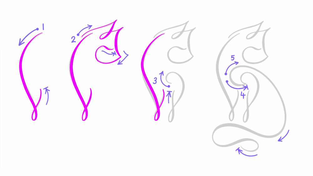 So with that in mind, let’s dive in and start from the very, very beginning, with some true basics, to make sure that we’re all on the exact same page in understanding how thick and thin strokes are traditionally formed. I promise that understanding the analog aspect of pen pressure and speed will help you a lot in the digital realm.