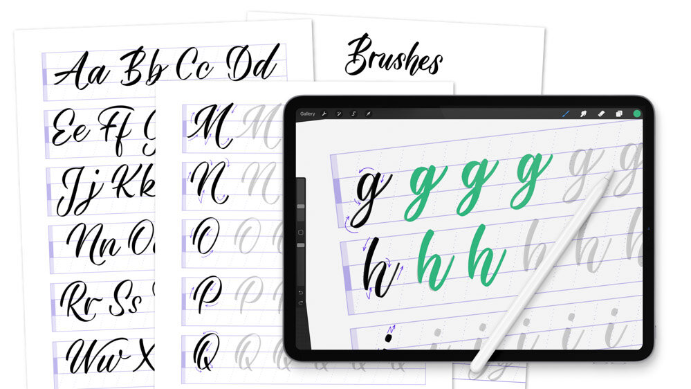 Watch the video above to see a preview of everything inside The Ultimate Lettering and Calligraphy Procreate Kit.