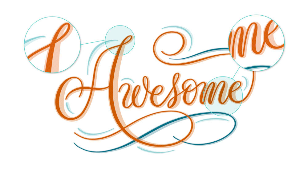 But the best part about Letter Inkers is that no two strokes will ever be the same. These brushes are highly responsive, so varying your pressure and speed even a little bit will affect the width and the opacity. This makes the resulting artwork have a really unique, organic, handmade look.
