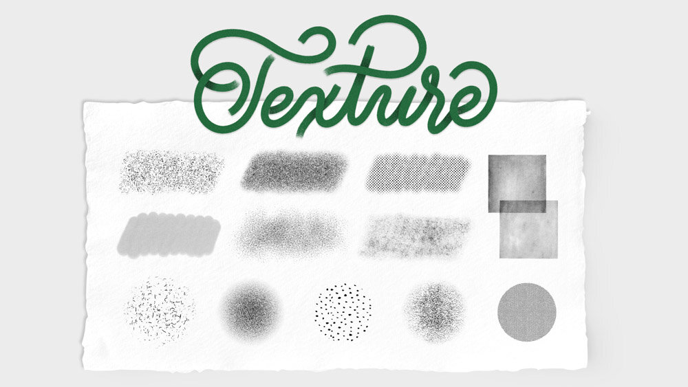 In this example of the word ‘Texture,’ I created the illusion of three-dimensional strokes using the Grainy Shadow Brush to darken the areas where strokes overlap. The lettering itself was done with my Textured Sign Painter's Brush, so you will also find that many of the brushes themselves incorporate texture into the stroke.