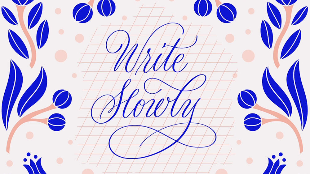 Also like real pointed pens – and nearly all lettering tools – it's crucial that you write very, very slowly with these brushes, and control your pressure. This ensures that, just like when writing ink on paper, your strokes are smooth and precise, and your transitions from thick to thin are fluid.