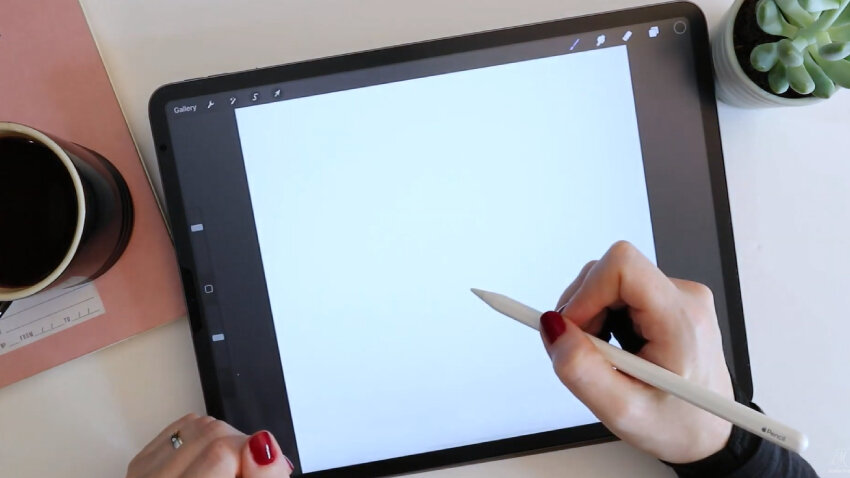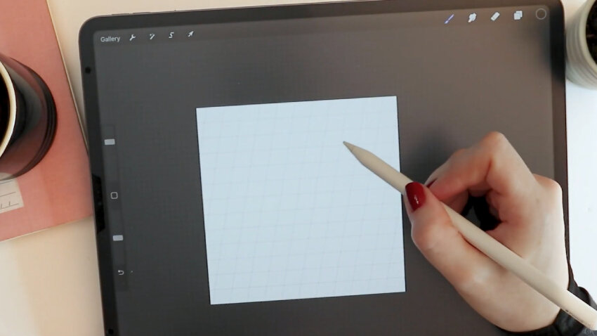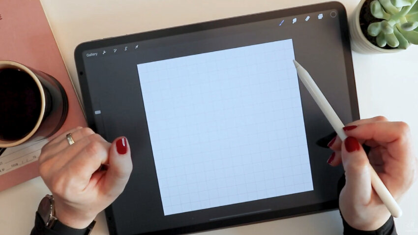 Today, I’m going to show you a very quick little hack for creating calligraphic grids right in your Procreate file. Some of us like to save these grids in the Cloud, which is perfectly fine. (In fact, I have tons of them saved in the Cloud that I’ve premade for different lettering purposes and styles, and I even have a pack of 12 grids that are free to download!) But sometimes you want to make a brand new grid and, you know, just play around and just get something really, really quick in your artboard.